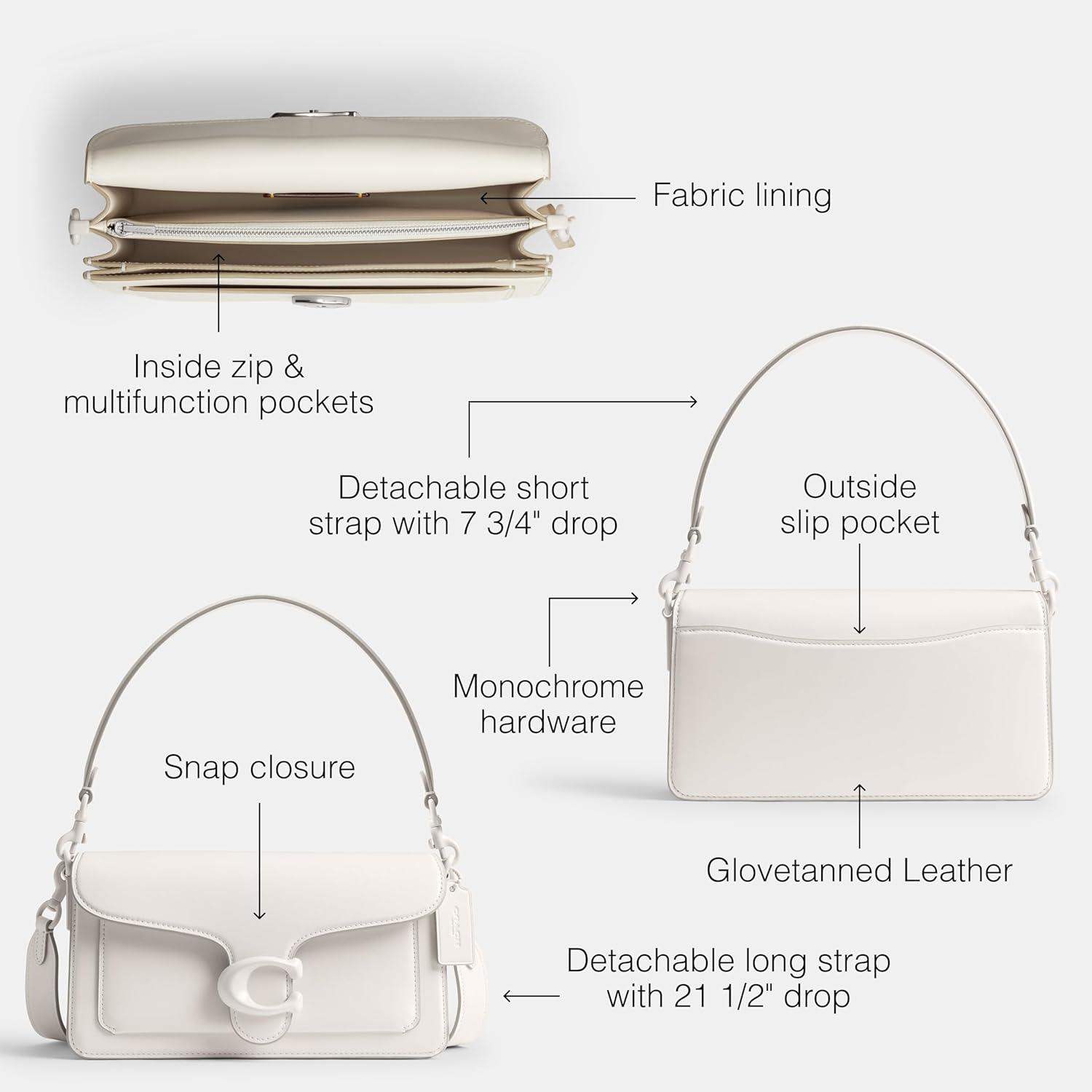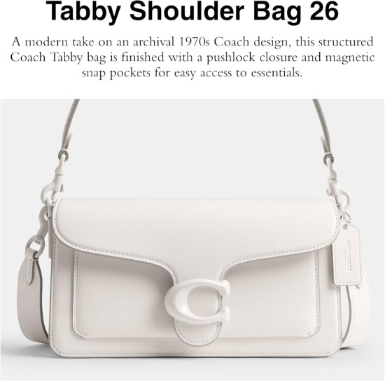 Editor's Notes: A modern take on an archival 1970s Coach design, the Coach Tabby Shoulder Bag 20 is crafted of glovetanned leather with monochrome hardware & finished with a pushlock closure and a magnetic snap pocket for easy access to essentials