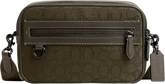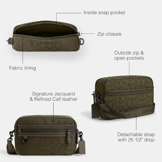 Store the essentials in style with the Theo Camera Bag. Crafted of our Signature jacquard and refined calf leather, it's ready for any adventure. Signature jacquard and refined calf leather, inside snap pocket, zip closure, fabric lining, outside zip and open pockets, detachable strap with 25 1/2' drop for shoulder or crossbody wear, 9' (L) x 5 3/4' (H) x 2 1/2' (W)