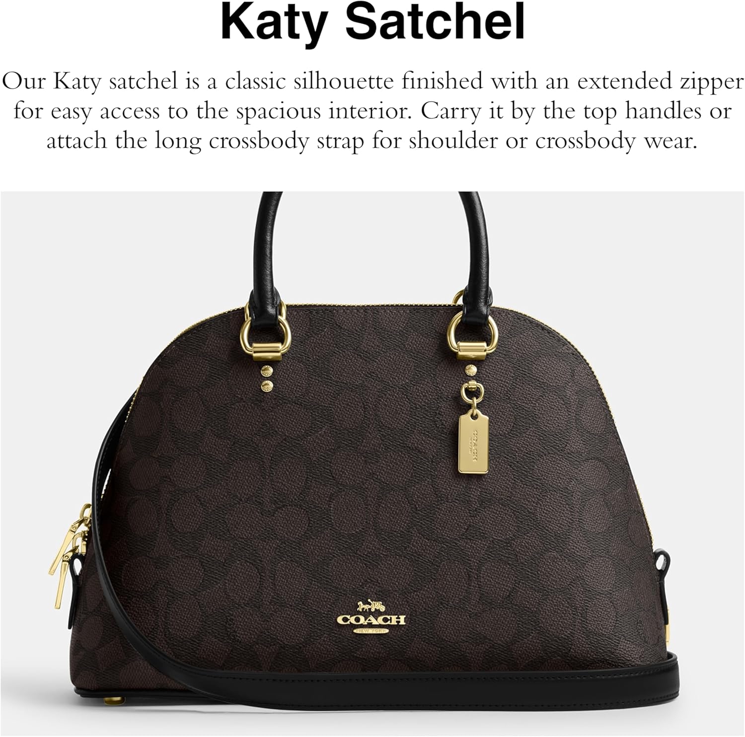 Editor's Notes: Our Signature canvas Katy satchel with smooth leather trim is a classic silhouette finished with an extended zipper for easy access to the spacious interior