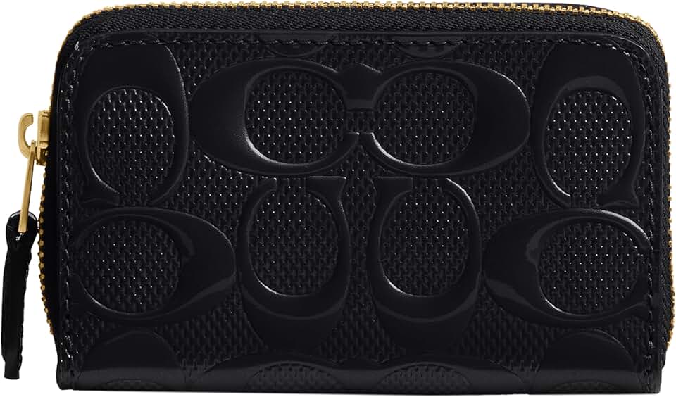 Crafted of our lustrous pearlized patent leather, the Small Zip Around Card Case has a slim design that slips easily into pockets, keeps your essentials secure & comes packaged in a Coach gift box. The Coach wallet features two credit card slots, three open compartments, zip-around closure and outside open pocket, 4 1/4' (L) x 2 3/4' (H) x 3/4' (W)