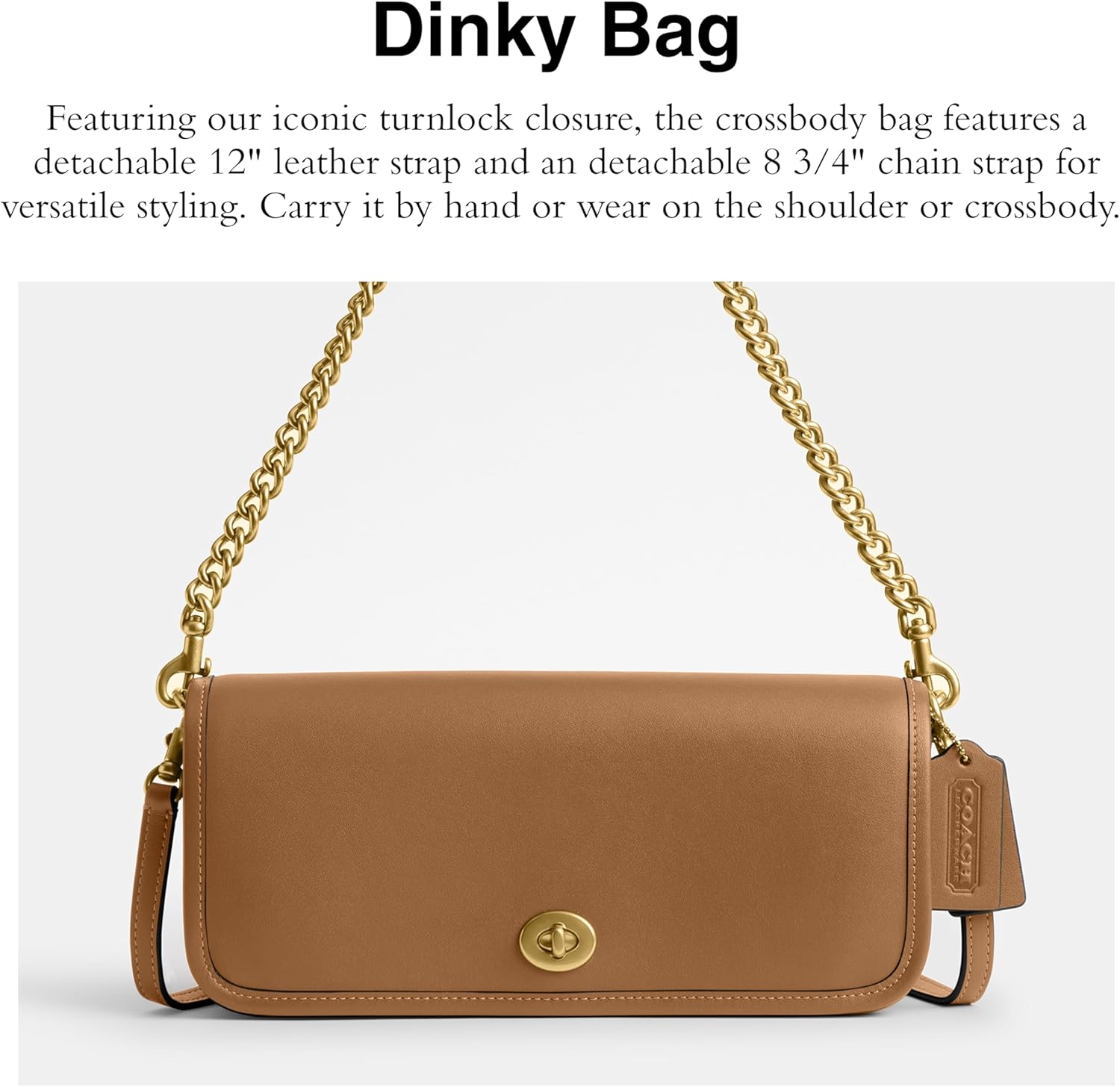 The Dinky Bag is part of The Coach Originals, a collection of archival-inspired bags that celebrates our legacy and authentic New York heritage. First introduced in 1974, 'the little bag that could' (and did), the Dinky is a longtime Coach favorite reimagined for today. Featuring our iconic turnlock closure, the elongated glovetanned leather style features organizational pockets inside and out, a detachable leather strap and an elegant detachable chain strap for versatile styling. Some styles are just too good to leave in the archives. Glovetanned leather, iInside zip and multifunction pockets, turnlock closure, leather lining, outside open pocket, detachable strap with 12' drop, detachable chain strap with 8 3/4' drop, 10 1/4' (L) x 4 3/4' (H) x 2 1/2' (W), The Coach Originals