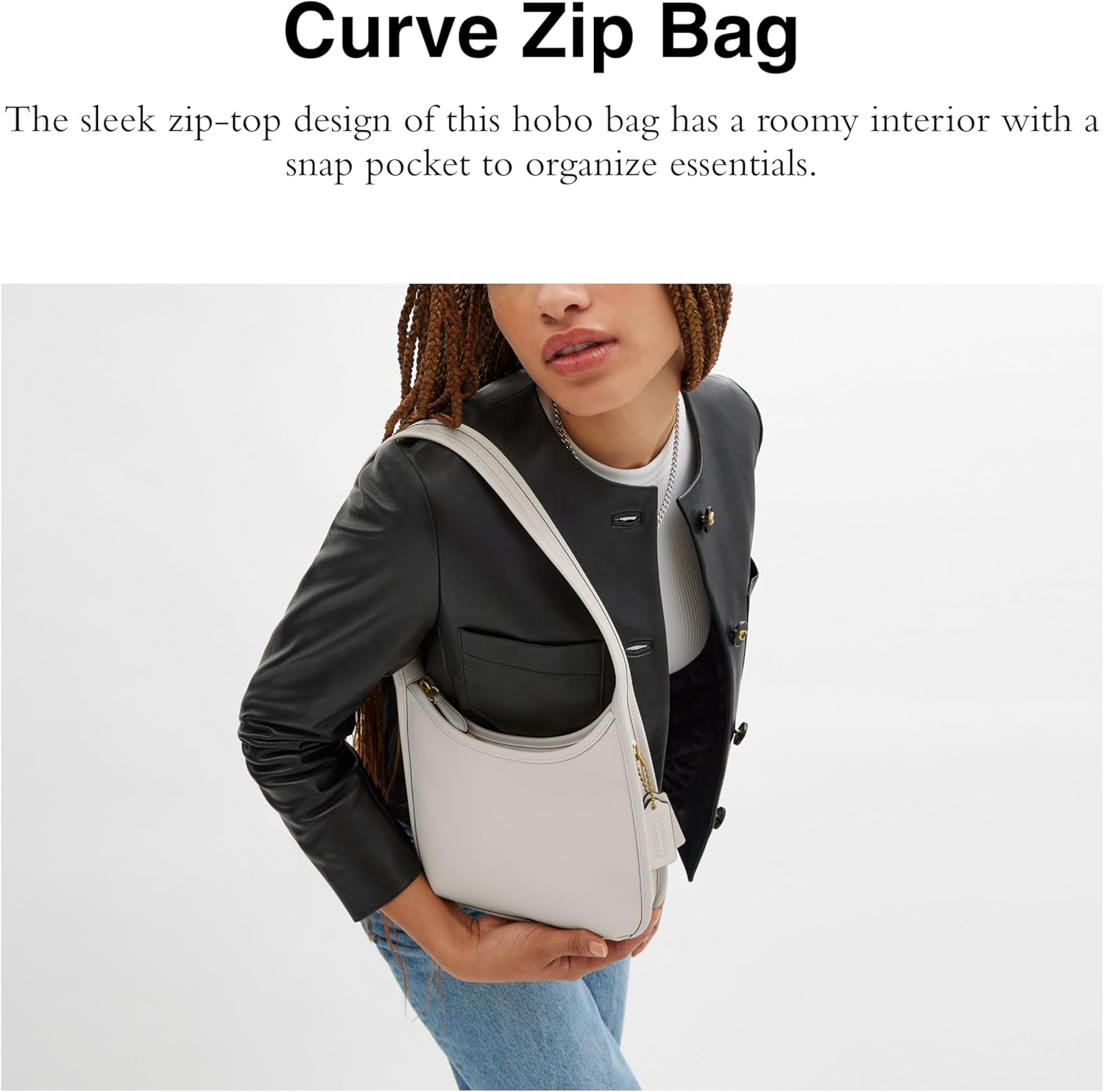 Iconic style meets effortless sophistication-introducing the COACH Curve Zip Bag! Crafted from luxurious glovetanned leather, this sleek yet versatile bag is designed to elevate any look. The zippered top closure keeps your essentials secure, while the inside snap pocket adds a touch of convenience for effortless organization. Lined with soft cotton, it offers a refined interior that's as chic as its exterior. Carry it by the top handle for a polished, ladylike feel or sling it over your shoulder with the adjustable strap for hands-free elegance.