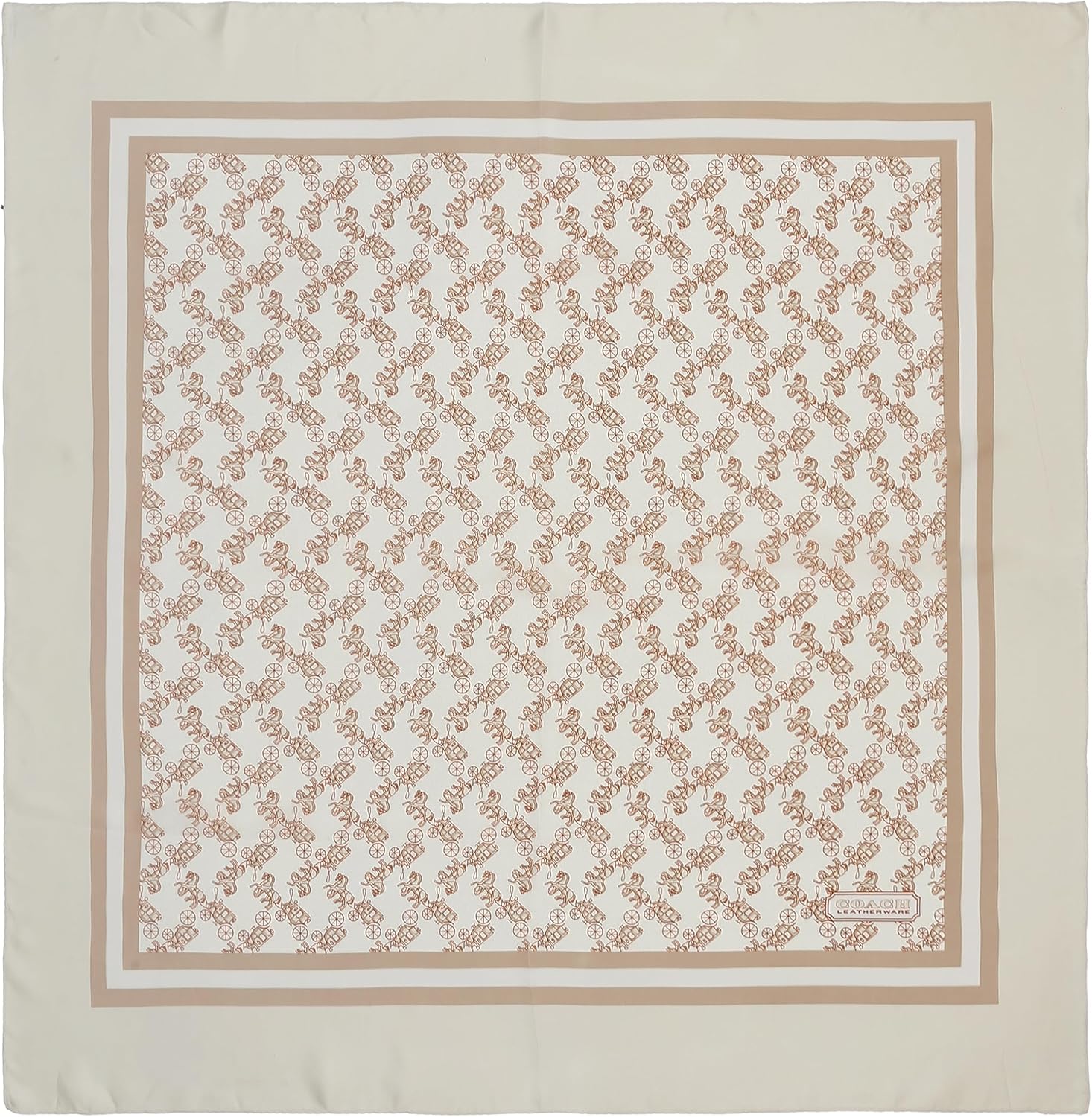 EDITOR'S NOTES: This lightweight silk square scarf is detailed with the iconic Coach Horse and Carriage motif, which was first introduced in the 1950s. It features the Coach Badge and is finished with a solid border.