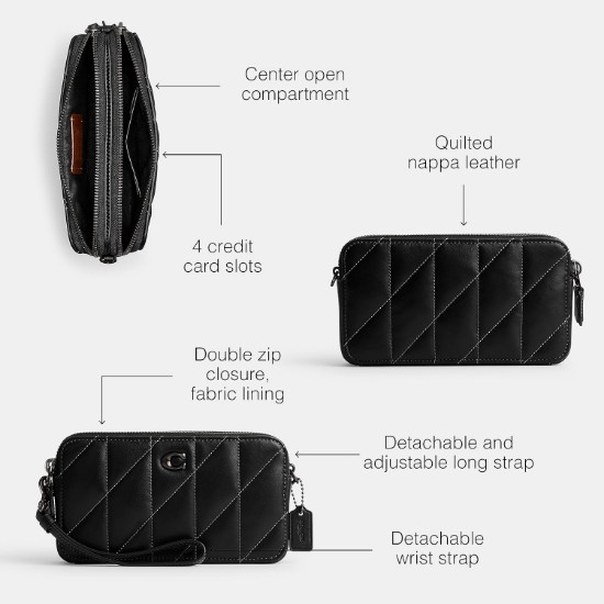 A total multitasker, our perfectly sized Kira can be worn as a crossbody, a wristlet, carried as a clutch or used as a pouch in a larger bag. Crafted of plush, quilted nappa leather, it has two zippered compartments and a convenient center slip pocket to keep you organized with room for a phone, cards, keys and other accessories.