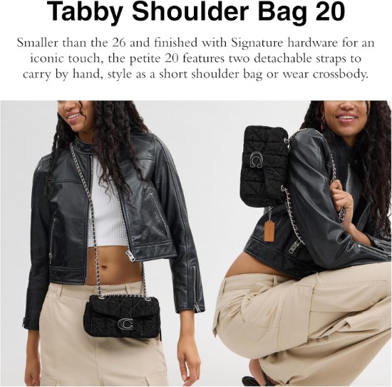 COACH Women's Quilted Denim Tabby Shoulder Bag 20, Black