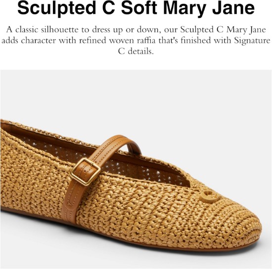 Glossy glam meets retro romance in the COACH Sculpted C Crinkle Patent Leather Soft Mary Jane. With a crinkle patent leather upper that catches the light just right, these shoes are made to stand out. The iconic sculpted C detail adds a signature touch, while the soft silhouette and slip-on ease blend effortlessly with style and comfort. A sleek buckle closure adds vintage flair and a secure fit. Inside, a man-made leather lining and leather footbed cradle your feet in luxe softness, while a durable rubber outsole ensures grip and all-day wearability.