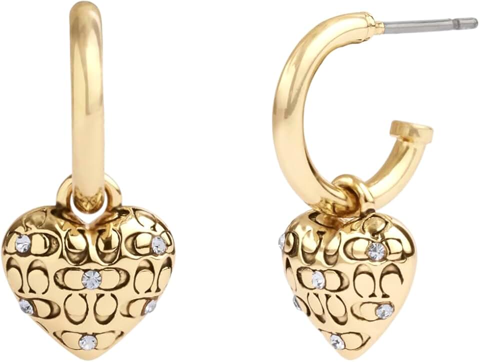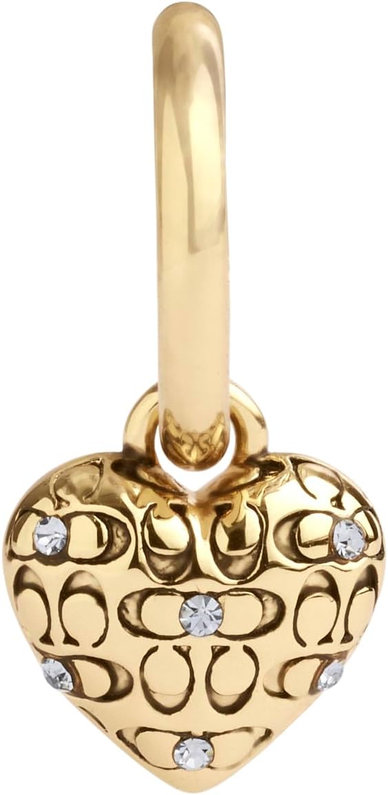 COACH Women's, Signature Quilted Heart Huggies, Crystal/Gold, One Size
