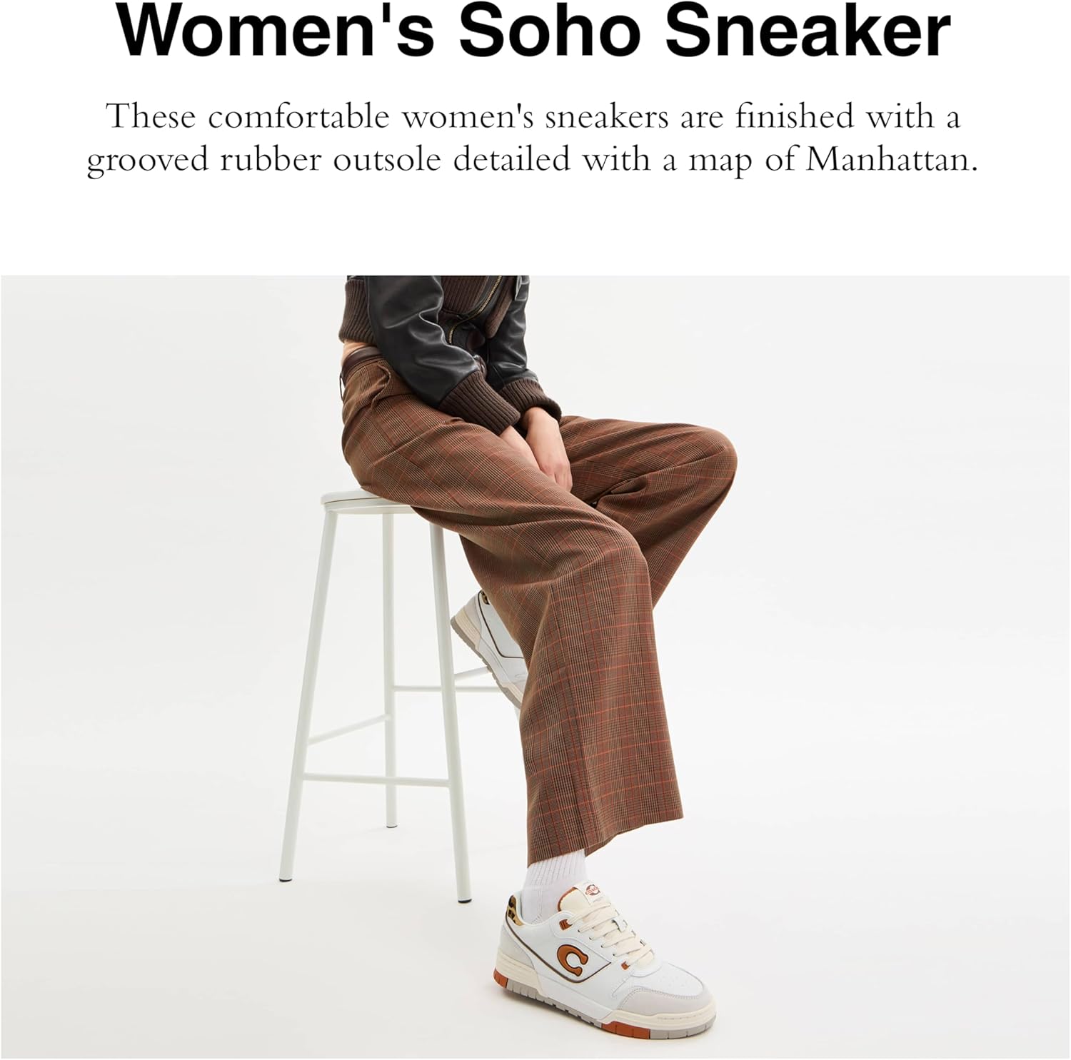 Editor's Notes: Our Coach Soho Sneaker is inspired by the courageous free spirit of our hometown New York City and built to keep pace with life on the go. These comfortable women's sneakers are finished with a grooved rubber outsole detailed with a map of Manhattan