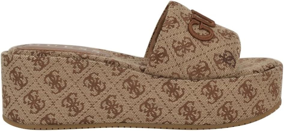 Slip-on versatility makes the Guess Bintai an easy choice in your closet! This slide silhouette is upgraded by a platform design and a single band with GUESS logo embroidery. Est. 1981, Guess is a global lifestyle brand and a symbol of a young, adventurous lifestyle.