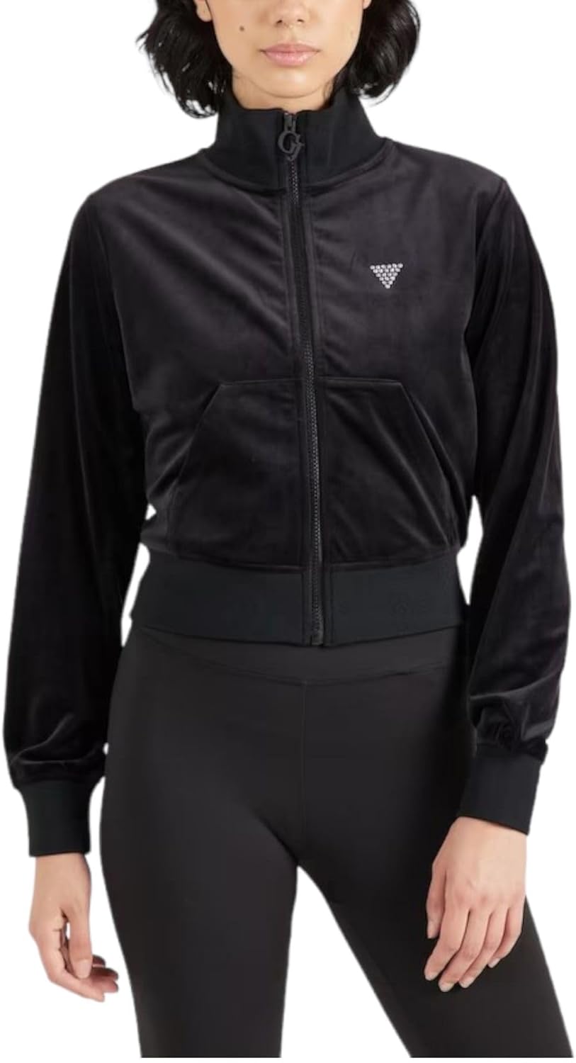 Velvet high neck sweatshirt with crystal logo icon and dual slip pockets