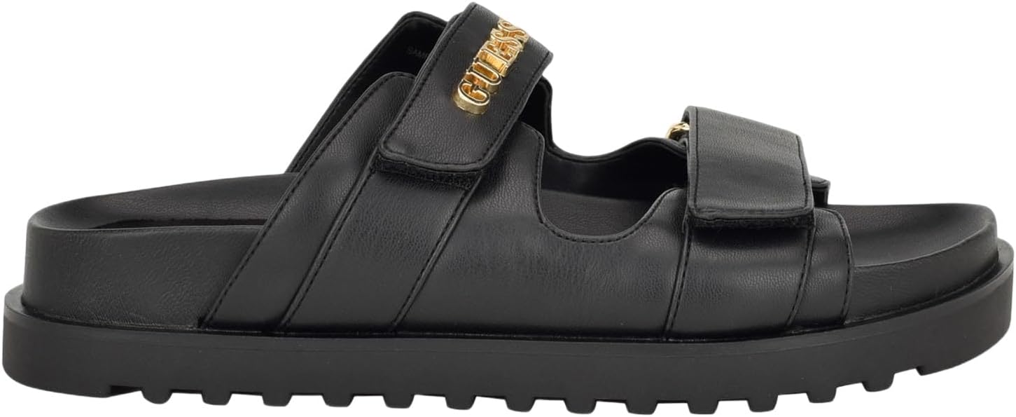 Go from spring – to – summer in the GUESS Fabulon slide. The double strap with slight logo hardware detailing and the molded footbed will give you comfort while elevating any look. Est. 1981, Guess is a global lifestyle brand and a symbol of a young, adventurous lifestyle.