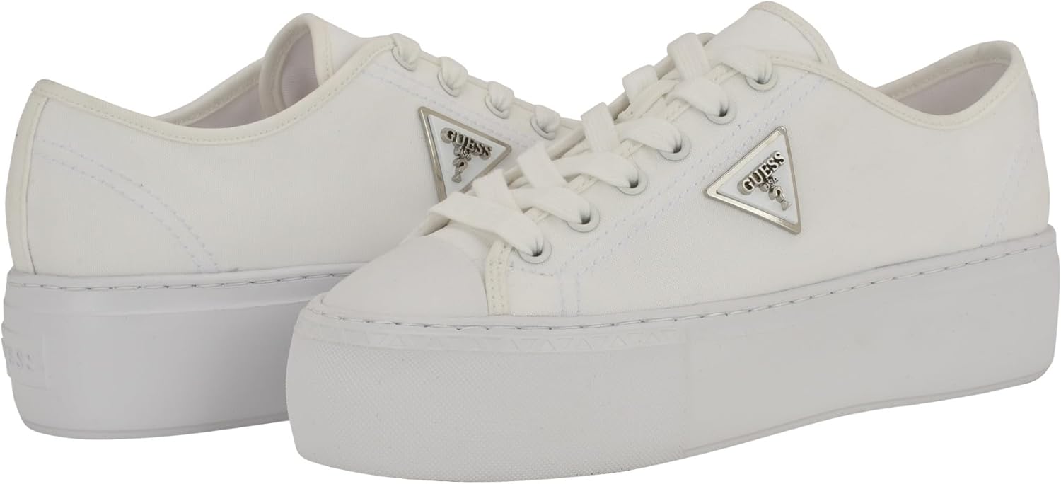 The Guess Joezi gives a casual dress-up-or-down appeal. This platform sneaker is accented with a signature Guess triangle logo that is ready to wear with jeans or a dress. Est. 1981, Guess is a global lifestyle brand and a symbol of a young, adventurous lifestyle.