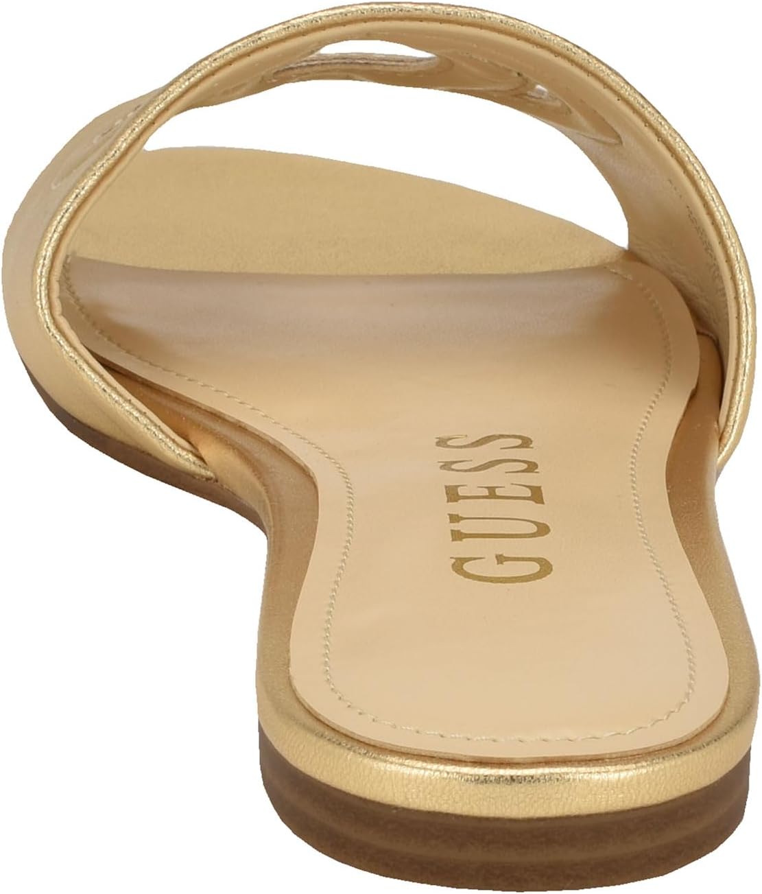 The Tashia slide sandal from GUESS is comfortable enough for a day exploring the town and stylish enough for a dressed up summer look. The logo cutout detailing gives a standout look to this sandal. Est. 1981, Guess is a global lifestyle brand and a symbol of a young, adventurous lifestyle.