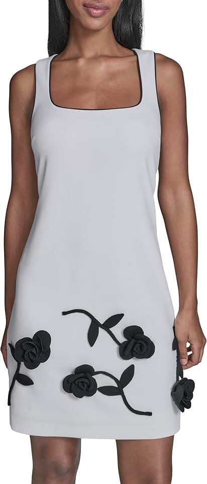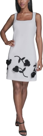 This Karl Lagerfeld Paris Women's Dress is a Sleeveless Square Neck Scuba Crepe 3D Flowers A Line
