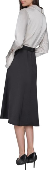 This Karl Lagerfeld Paris Women's Dresses Dress is a Long Sleeve Crinkle Poly Satin Novelty Belt Midi Shirt Dress