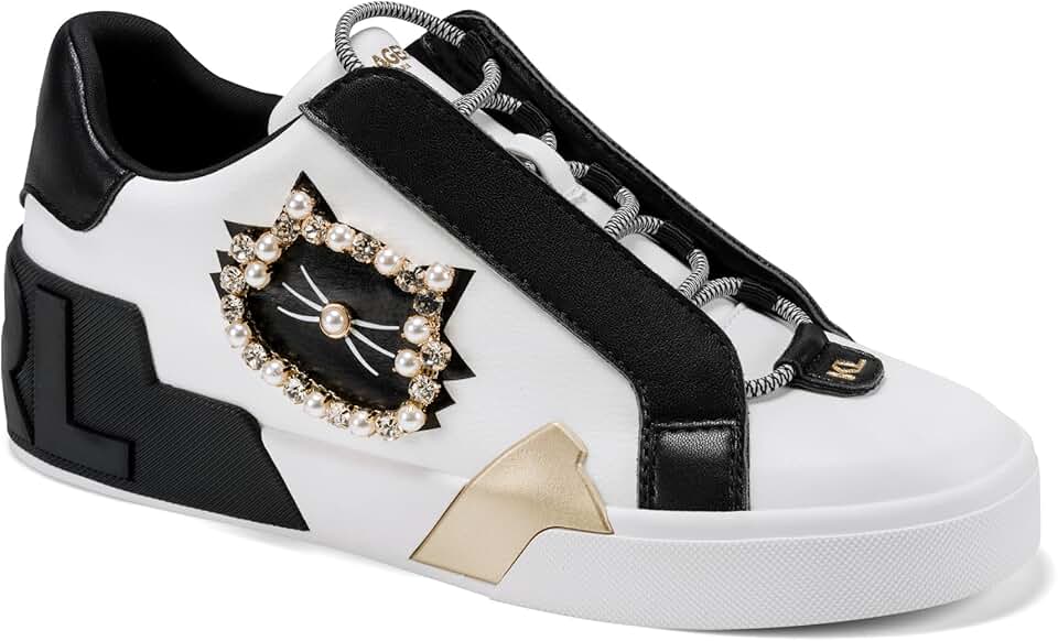 KARL LAGERFELD Women's Madisyn Slip on Sneaker with Studded Choupette Detail