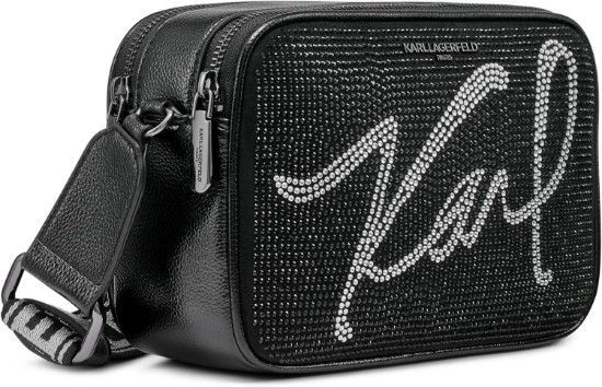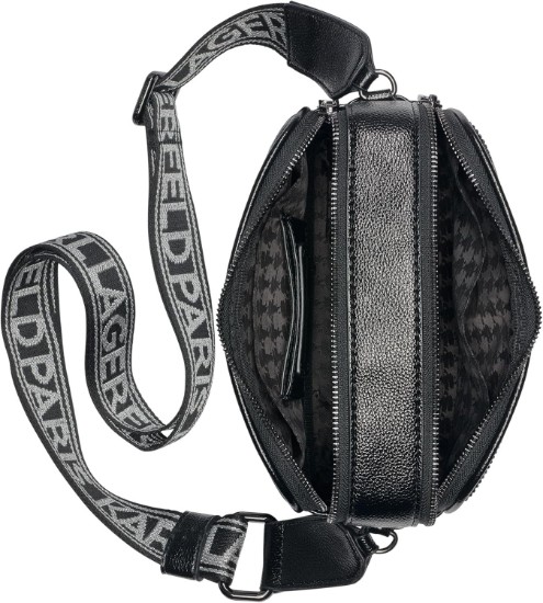 KARL LAGERFELD Women's Maybelle Studded Logo Crossbody, Black/Silver Multi, One Size