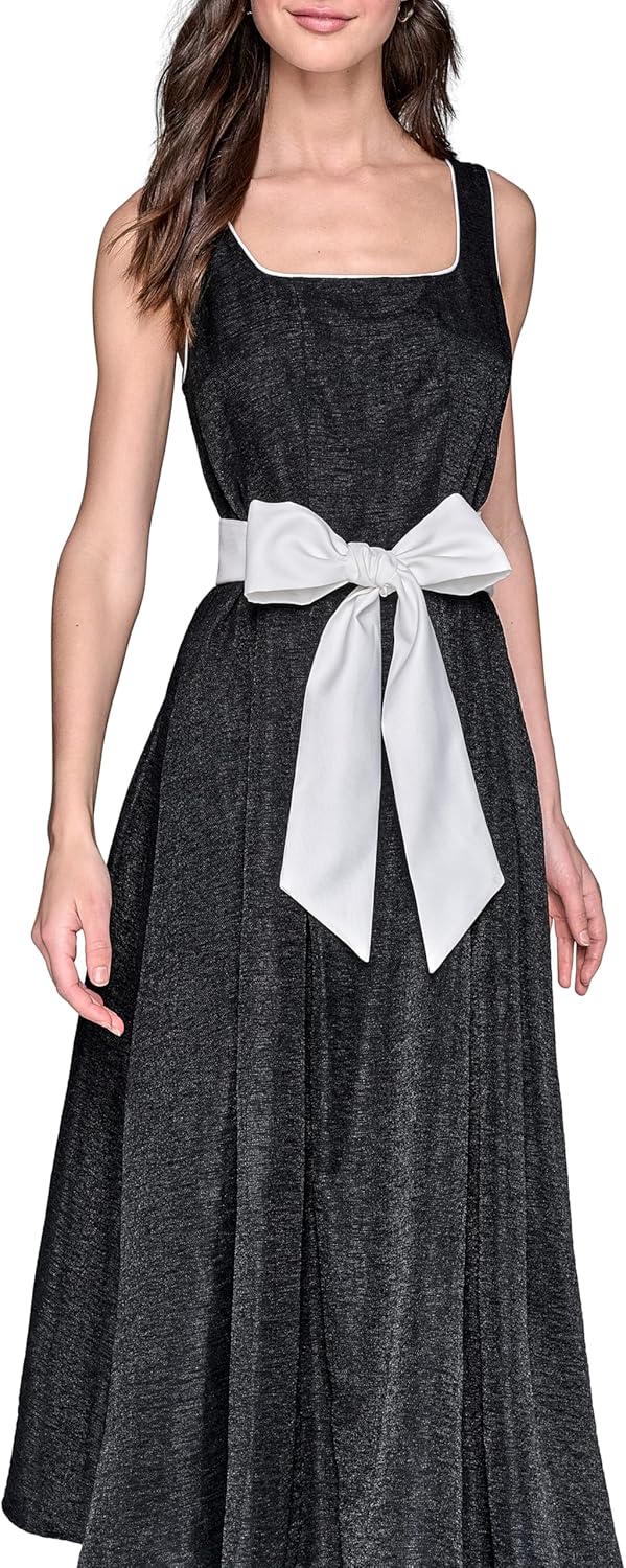 KARL LAGERFELD Women's Shiny Slub Suiting Tie Belt Sash A-line Dress