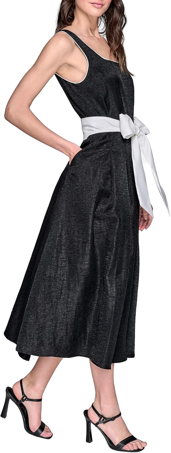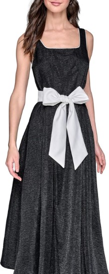 This Karl Lagerfeld Paris Women's Dresses Dress is a A-Line Voile Tie Belt Sash Midi Shiny Slub Suiting