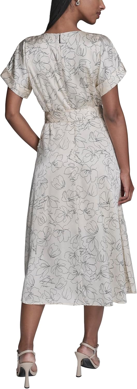 This Karl Lagerfeld Paris Women's Dress is a Short Sleeve V-Neck Aero Wash Midi Belted