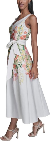 This Karl Lagerfeld Paris Women's Dress is a Sleeveless V-Neck Cotton Sateen Midi Placement Floral