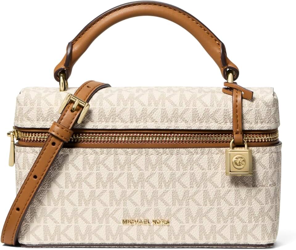 MICHAEL Michael Kors Jana Extra Small Top Handle Xbody brings effortless elegance to your everyday. Constructed from logo-print polyvinyl chloride material, this trendy crossbody bag offers a zippered top closure to keep your essentials safe. With a