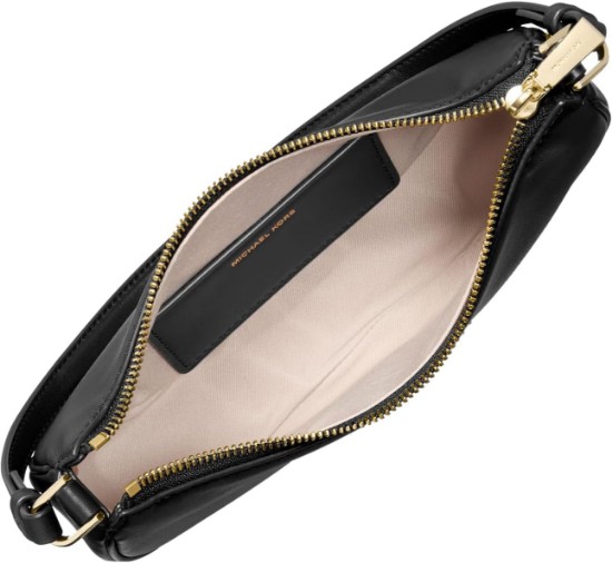 This chic half-moon Kyla pochette is made from supple leather and punctuated with gold-tone MK hardware. Slip the slim silhouette on your shoulder for a night out, and use the optional crossbody strap to keep your hands free for a day on the go. Either way, it’s sure to earn compliments.