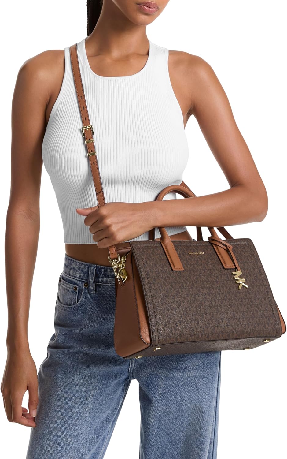 The Laila satchel is destined to take you from dawn to dusk with ease. Designed in a structured silhouette from Signature logo-print canvas, it opens to a median-sized interior made to hold your daily essentials. Adjust the crossbody shoulder strap for the perfect fit.