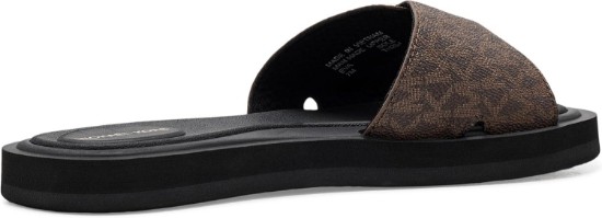 Pool slide sandal with MK circle stacked charm hardware on lighlty cushioned footbed.