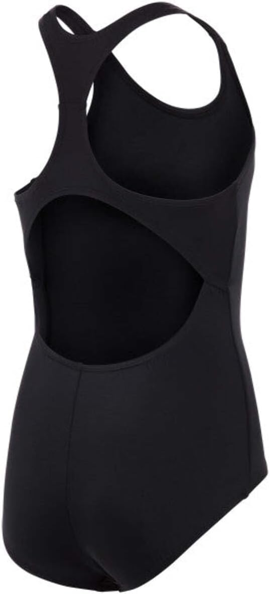 Have her beach or pool ready in no time with the Nike Kids Essential Racerback One-Piece. This bathing suit is crafted with fixed racerback straps, cutout at the back and signature swoosh logo at the front to give her swim time a trendy finish.