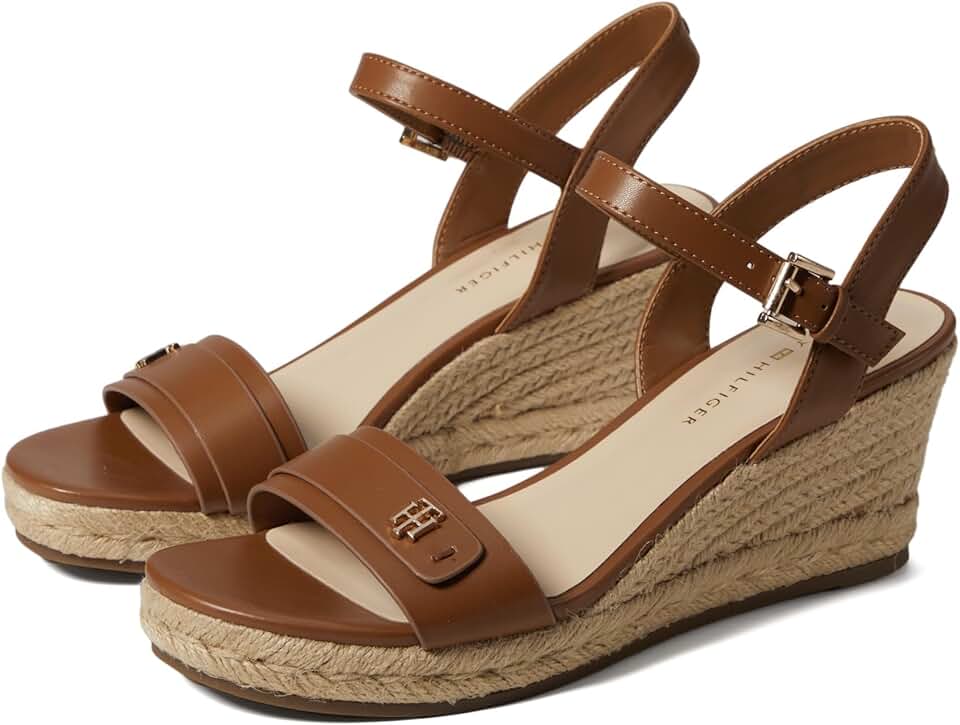 Let every step of yours define sizzling beauty as you wear the Tommy Hilfiger Genavo Sandals. The wedge-heeled footwear features faux leather upper construction with buckled ankle strap closure and woven braided detail