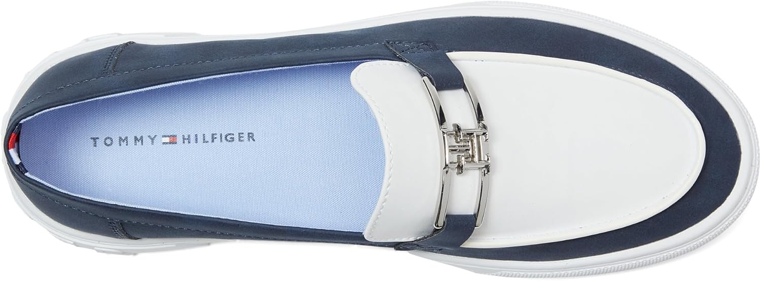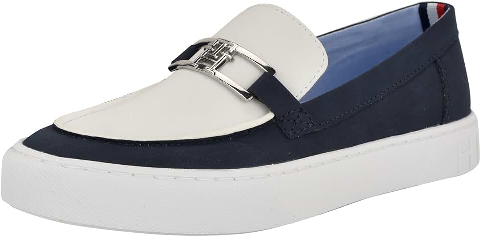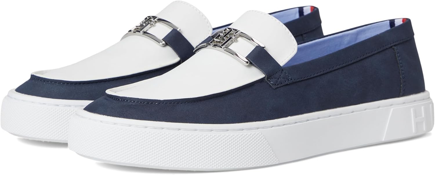 The Tommy Hilfiger Wilfer loafers with signature metallic logo hardware add some pep to your step with their easy and sporty design that keeps you moving confidently all day long. They are made of a polyester upper, leather insole, and polyester lining. Easy to slip on and off, these classic penny loafers are perfect to pair with casual or formal outfits. Round toe shape. Leather outsole.