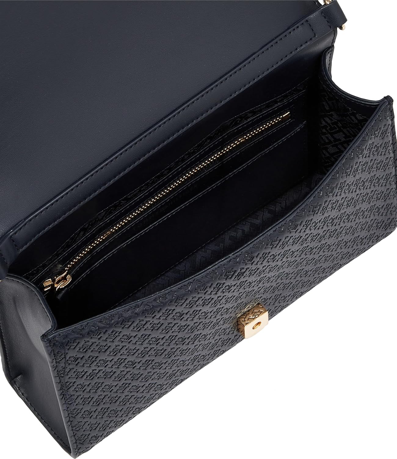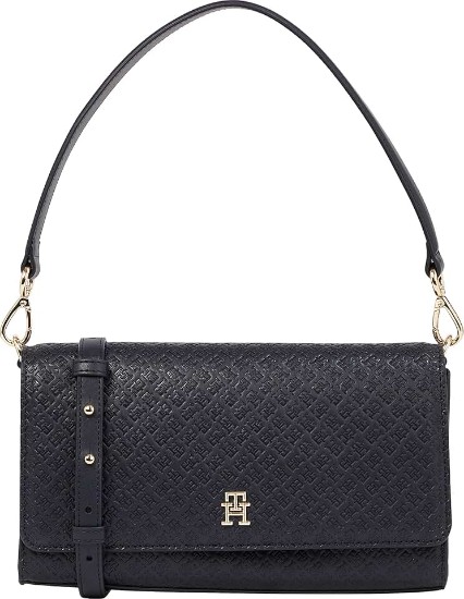 Explore elegance and functionality with the Tommy Hilfiger Shoulder Bag, designed for the woman on the go. This saddle bag is perfect for carrying daily essentials such as phones, keys, wallets, and makeup, all while maintaining a sleek, compact form. It is ideal for both travel and everyday use without looking bulky. Made from durable materials, it features a removable and adjustable crossbody strap. Equipped with a secure buckle flap closure, an internal zip pocket, and classy embellished hardware, it ensures your belongings are carried securely and stylishly. Its elegant design complements any outfit, enhancing your look for casual or formal settings. Perfect gift for special occasions like Valentine's Day, Mother's Day, birthdays, or anniversaries, the Tommy Hilfiger Monogram Shoulder Bag adds a touch of sophistication to your wardrobe, making it a versatile, stylish, and practical accessory ready for every adventure.