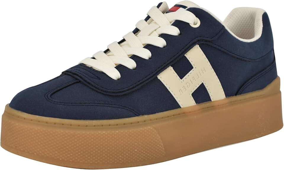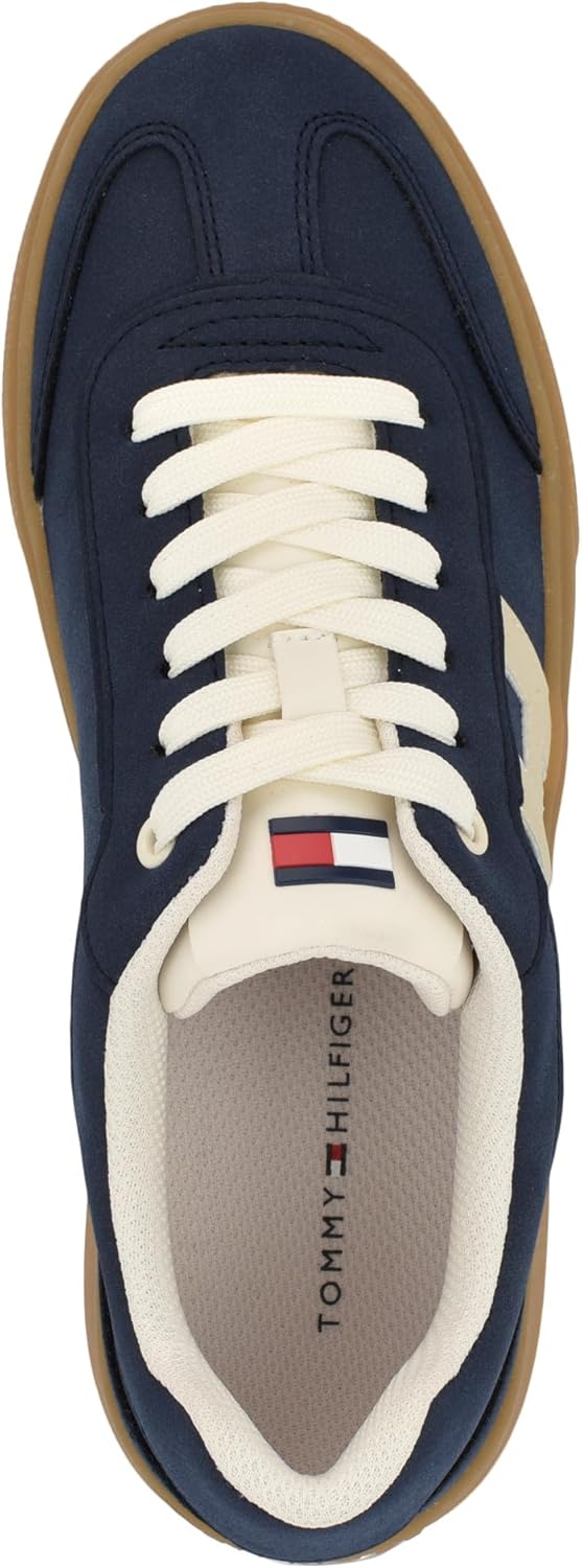 The Tommy Hilfiger Celmi lace up sneaker sports an updated classic look with branded detailing on the side. This style is built with comfort and fun for every day wear. Polyurethane upper. Polyester lining and ethylene vinyl acetate insole. Lace-up closure in a round toe silhouette. Padded tongue and collar for added support. Branding on tongue and upper. Leather outsole.