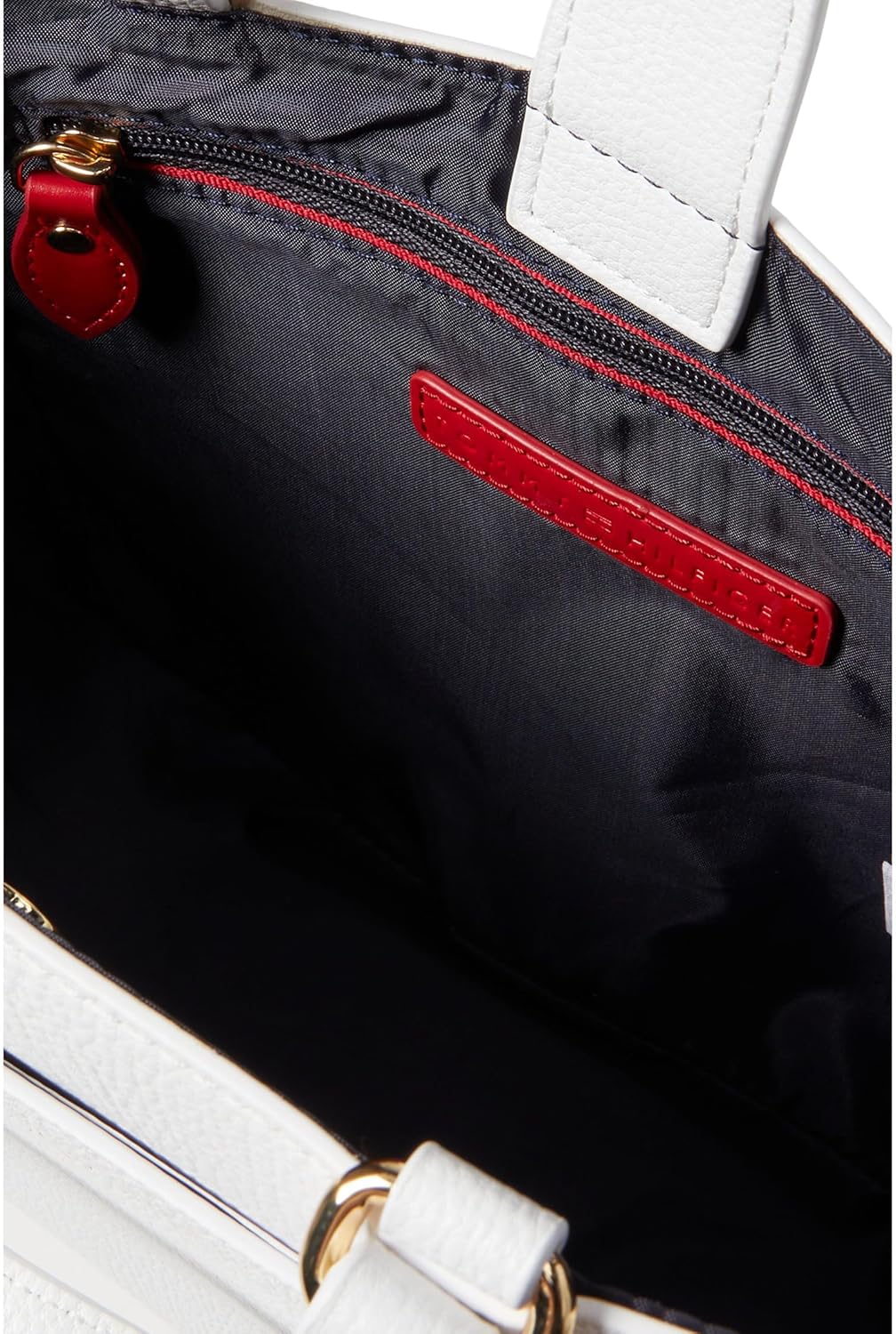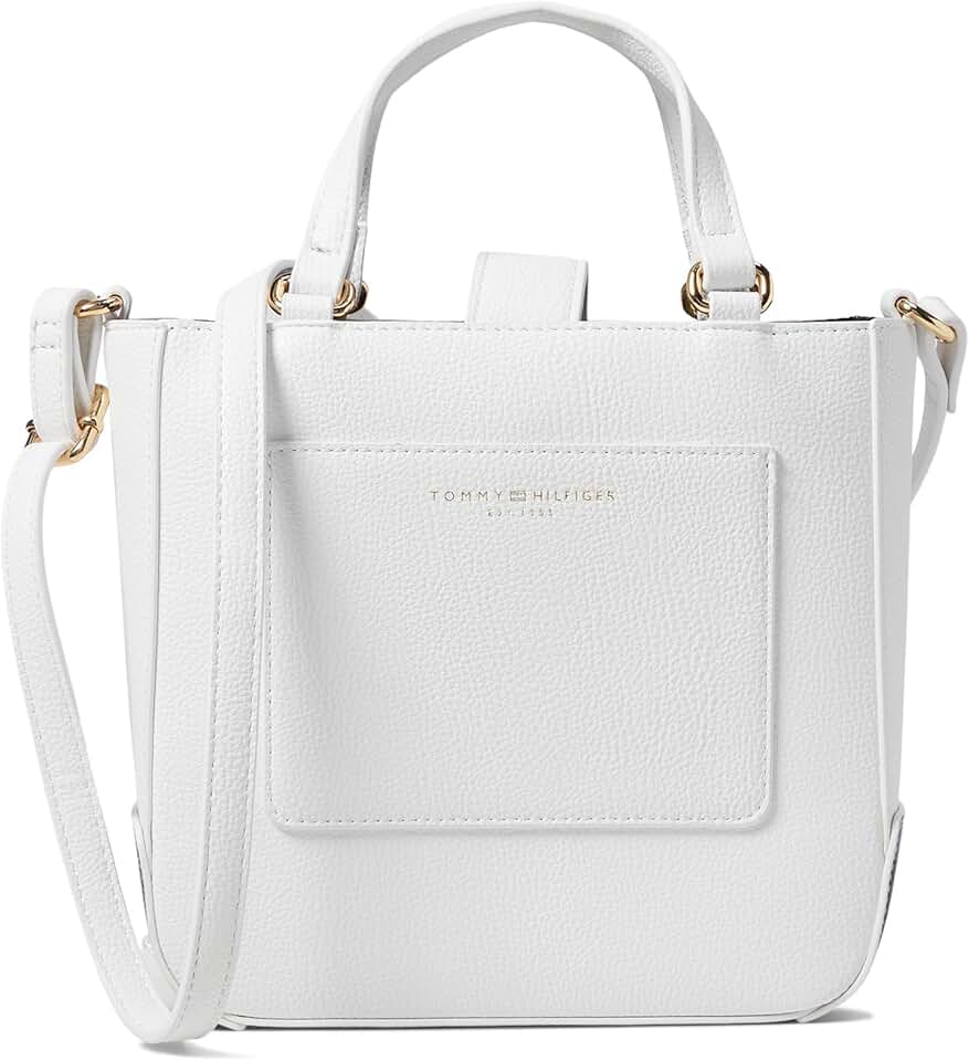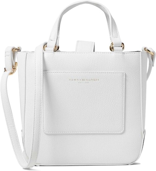 Add elegance to your look by carrying Tommy Hilfiger Dawn II Micro Crossbody Bag that comes in a lightweight construction with spacious compartments for storage. The crossbody bag features one exterior pocket, two interior pockets, two internal compartments, a magnetic closure, two top grab handls, and an adjustable crossbody strap. Polyurethane pebble construction. Brand logo detail on the front. Nylon lining.