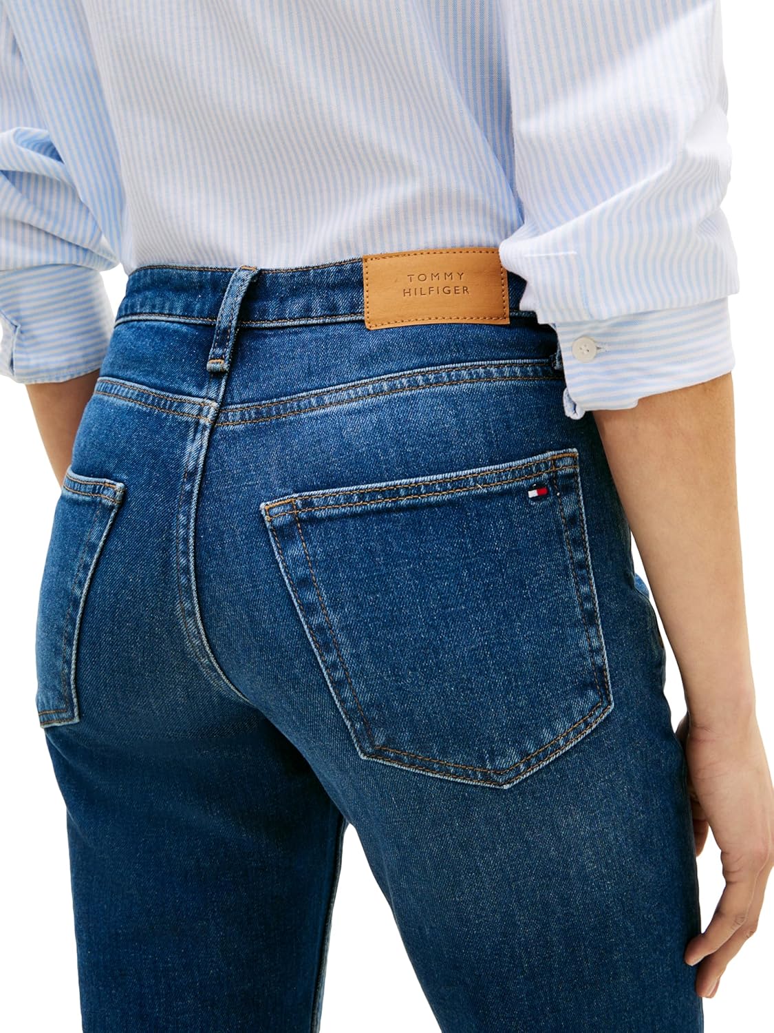 Introducing Tommy Hilfiger's jeans for women, crafted from a premium blend of cotton and stretch fibers for optimal shape retention and comfort. Renowned for its timeless cut, sharp aesthetic, and comfortable fit, this best-selling bottom remains a staple year after year. Tommy Hilfiger's pants boast a blend of premium cotton and stretch fibers, making them the go-to choice for women seeking both style and functionality. Pair it effortlessly with your favorite Tommy Hilfiger shirts, t-shirts, sweaters or jacket for versatile styling options suitable for any occasion, whether it's a casual outing or a formal event. Ideal for daily wear, work, school, events, or vacation, this women's bottom is a wardrobe essential. Treat yourself or surprise a loved one with this timeless piece, perfect for mothers, sisters, girlfriends, wives, daughters, or friends. Elevate your everyday style with the unbeatable quality and sophistication of Tommy Hilfiger's women's denim.