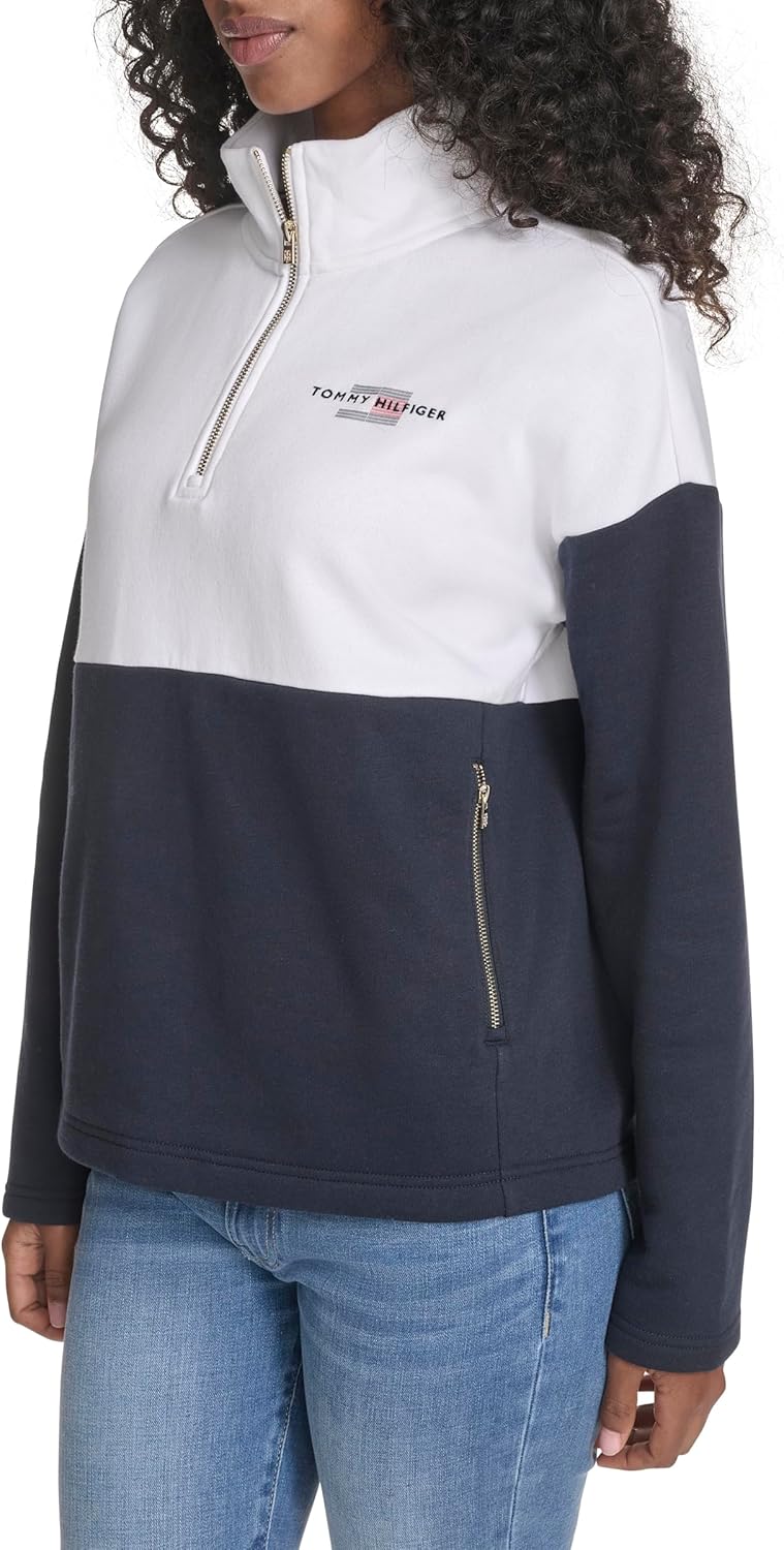 Tommy Hilfiger Women's 1/4 Zip Mockneck Colorblock Fleece Sweatshirt