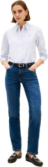Introducing Tommy Hilfiger's jeans for women, crafted from a premium blend of cotton and stretch fibers for optimal shape retention and comfort. Renowned for its timeless cut, sharp aesthetic, and comfortable fit, this best-selling bottom remains a staple year after year. Tommy Hilfiger's pants boast a blend of premium cotton and stretch fibers, making them the go-to choice for women seeking both style and functionality. Pair it effortlessly with your favorite Tommy Hilfiger shirts, t-shirts, sweaters or jacket for versatile styling options suitable for any occasion, whether it's a casual outing or a formal event. Ideal for daily wear, work, school, events, or vacation, this women's bottom is a wardrobe essential. Treat yourself or surprise a loved one with this timeless piece, perfect for mothers, sisters, girlfriends, wives, daughters, or friends. Elevate your everyday style with the unbeatable quality and sophistication of Tommy Hilfiger's women's denim.