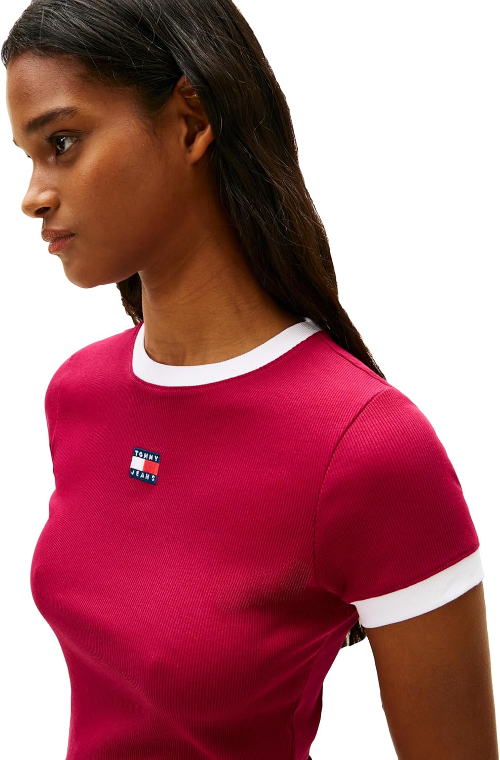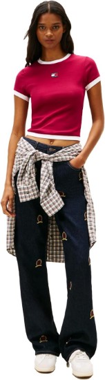 Introducing Tommy Hilfiger's iconic women's t-shirts, featuring the signature embroidered badge logo and crafted from a premium cotton blend for a soft hand feel and comfortable fit. These graphic tees are the epitome of everyday style, perfect for effortlessly elevating your casual look. Durable enough to withstand serious wear, Tommy Hilfiger's graphic t-shirts for women are breathable, crisp, and lightweight, ensuring you stay cool and comfortable every time you slip them on. The special wash process gives these crewneck graphic tees their softness, making them a solid basic option for any wardrobe. Pair them seamlessly with your favorite Tommy Hilfiger shorts, pants, jeans, or jackets for versatile styling options suitable for any occasion, whether it's a casual outing or a formal event. Ideal for daily wear, work, school, events, vacation, or sports, these women's shirts are a wardrobe essential. Treat yourself or surprise a loved one with this timeless piece, perfect for mothers, sisters, girlfriends, wives, daughters, or friends. Elevate your everyday style with the unbeatable quality and sophistication of Tommy Hilfiger's women's shirts.