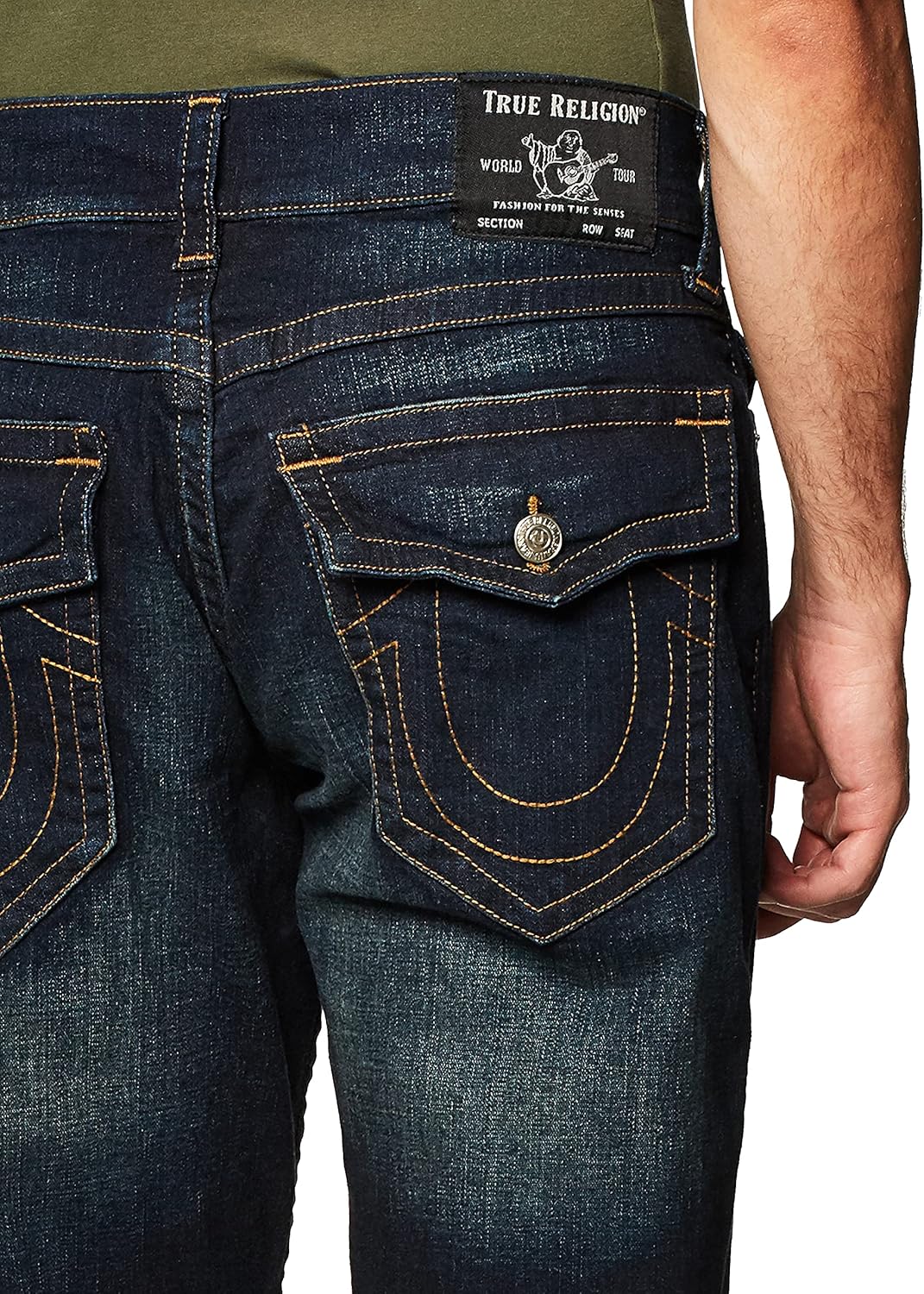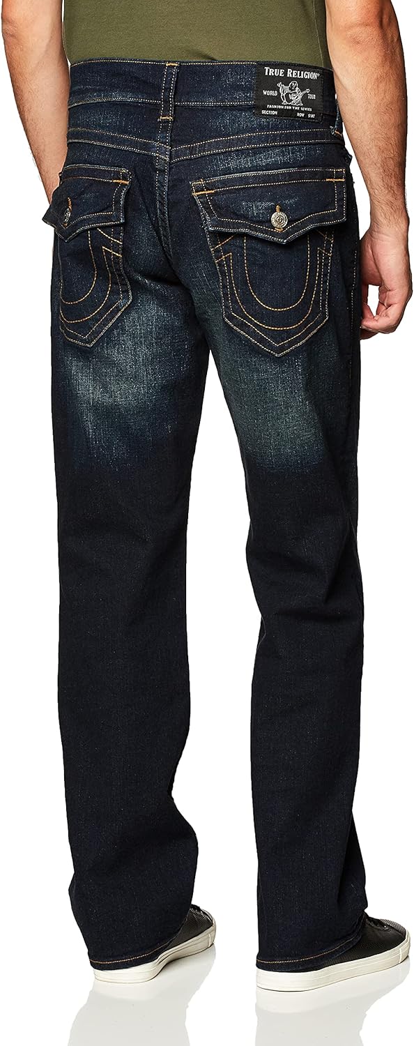The True Religion Men's Ricky Straight Leg Jean is the original. Cut from a 95% cotton, 3% Elasterell-P, and 2% elastane blend, it delivers the relaxed straight leg fit the Ricky has always been known for, with just enough stretch for all-day comfort. Back flap pockets with horseshoe embroidery, five-pocket styling, and a zipper fly make these mens jeans a timeless wardrobe staple.