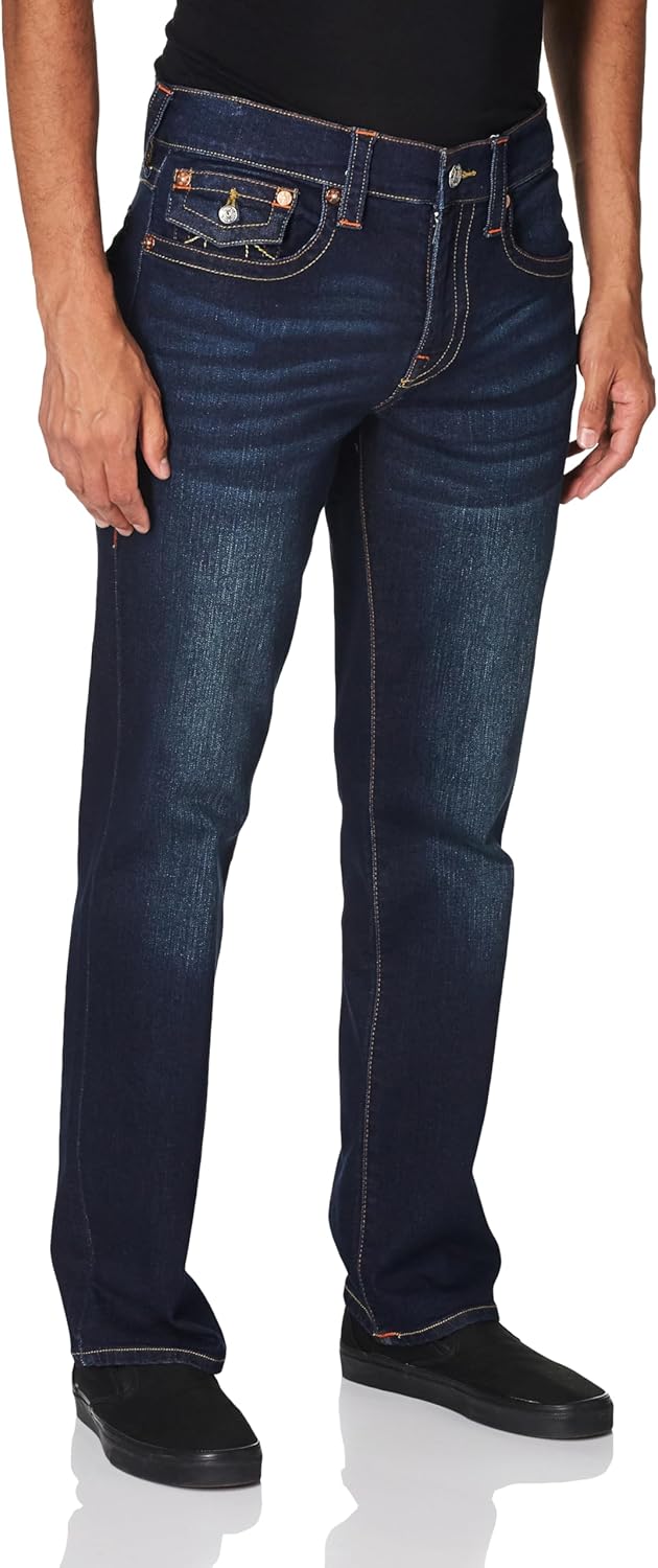 Upgrade your denim collection with the True Religion Men's Rocco Super T Flap 1/2' Jeans, featuring a 32' inseam. These jeans are designed with True Religion's signature Super T stitching, delivering bold and eye-catching detailing. The Rocco fit offers a modern, slim silhouette that enhances your style while providing comfort and flexibility. Made from high-quality denim, these jeans are built to last and provide exceptional comfort. The flap pockets with button closures add a rugged, stylish touch, making these jeans perfect for a variety of casual and semi-casual occasions.