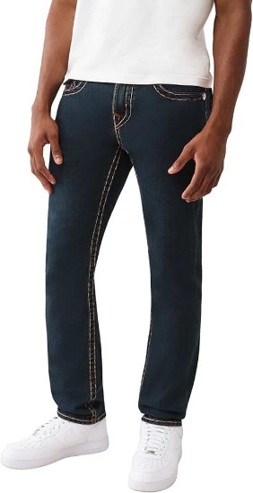 True Religion Rocco Super T Flap Jeans. Designed with a 32-inch inseam and a slim fit, these jeans combine street-ready style with signature True Religion craftsmanship. Bold Super T contrast stitching delivers standout edge, while the flap back pockets feature iconic horseshoe embroidery. Crafted from premium stretch denim, these jeans offer all-day comfort without sacrificing fit or style—perfect for guys who want their jeans to speak volumes.Attributes:Brand: True ReligionStyle: Rocco Super T FlapFit: Slim FitInseam: 32 inchesRise: Mid RiseClosure: Zip fly with branded buttonBack Pockets: Flap style with horseshoe embroideryStitching: Oversized Super T contrast stitchingPockets: 5-pocket designCare Instructions: Machine washable