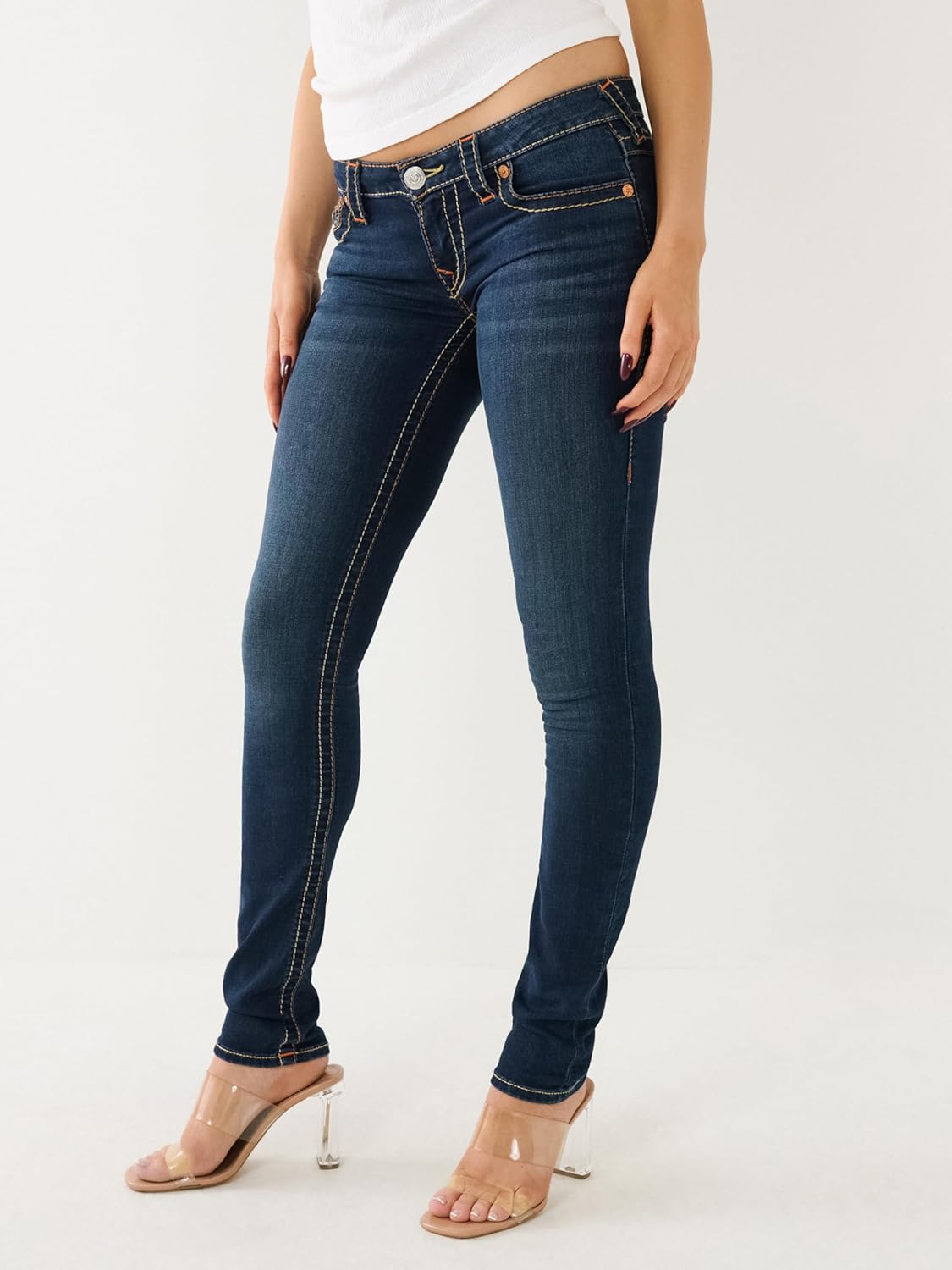 Discover the perfect balance of comfort, quality, and style with the True Religion Women’s Stella Low Rise Skinny Fit Jeans. A timeless essential in womens jeans and skinny jeans for women, these Stella jeans feature a sleek low rise with a skinny fit for a flattering, modern silhouette. Crafted from premium stretch denim (99% cotton, 1% elastane), they offer optimal comfort while maintaining their shape throughout the day. Signature details include contrast stitching, horseshoe embroidery, and iconic True Religion back flap pockets, giving these jeans for women a distinctive edge. With a 7.5' low rise, 32' inseam, and medium indigo vintage wash, they’re versatile enough to pair with casual tops, blouses, or heels. Whether you’re dressing up or down, these women’s jeans deliver accurate sizing, durable construction, and premium finish. Add them to your wardrobe for an everyday staple that’s both comfortable and stylish.